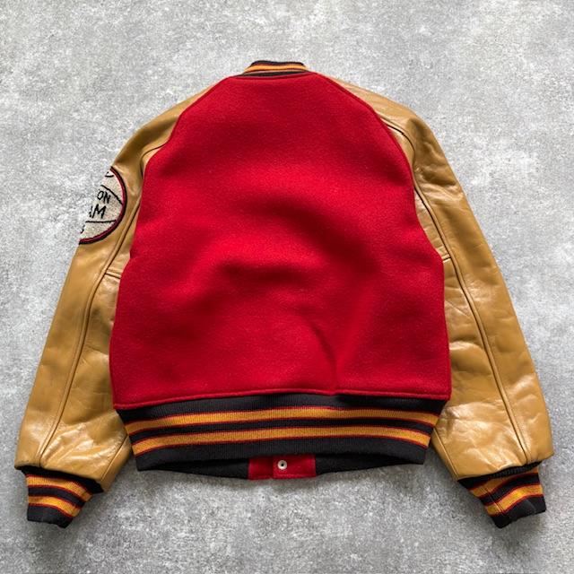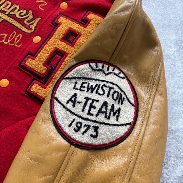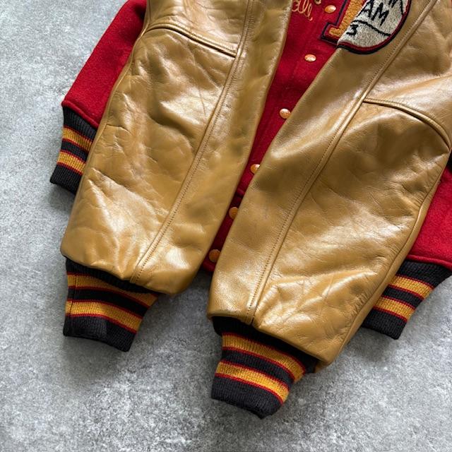 Featuring a wool body with contrasting leather sleeves, bold chenille lettering, and chain-stitched embroidery, every detail reflects the craftsmanship that makes true vintage enthusiasts nod in approval.