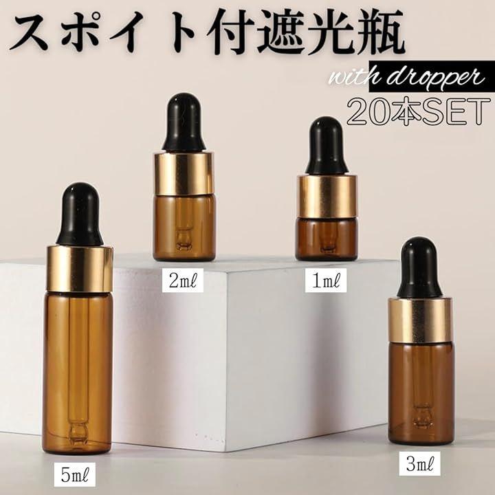 「商品詳細」セット本数:20本 容量:1ml / 2ml / 3ml / 5ml カラー:ブラウン 材質:ガラス、シリコンゴム、PP