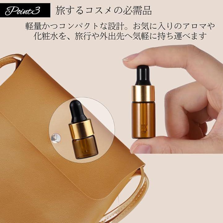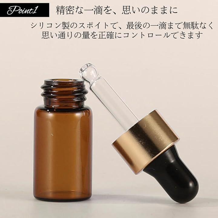 「毎日の美容、もっと手軽に」スポイト付きの高品質ガラス遮光瓶で、アロマオイルや化粧品の一滴一滴を大切に保管。