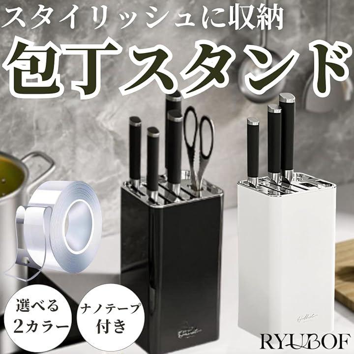 「コンパクトサイズで省スペース」高さ23.1cm、縦12.0cm、横11cmの省スペース設計で、5本の包丁と調理バサミ専用穴1個をすっきり収納できます。