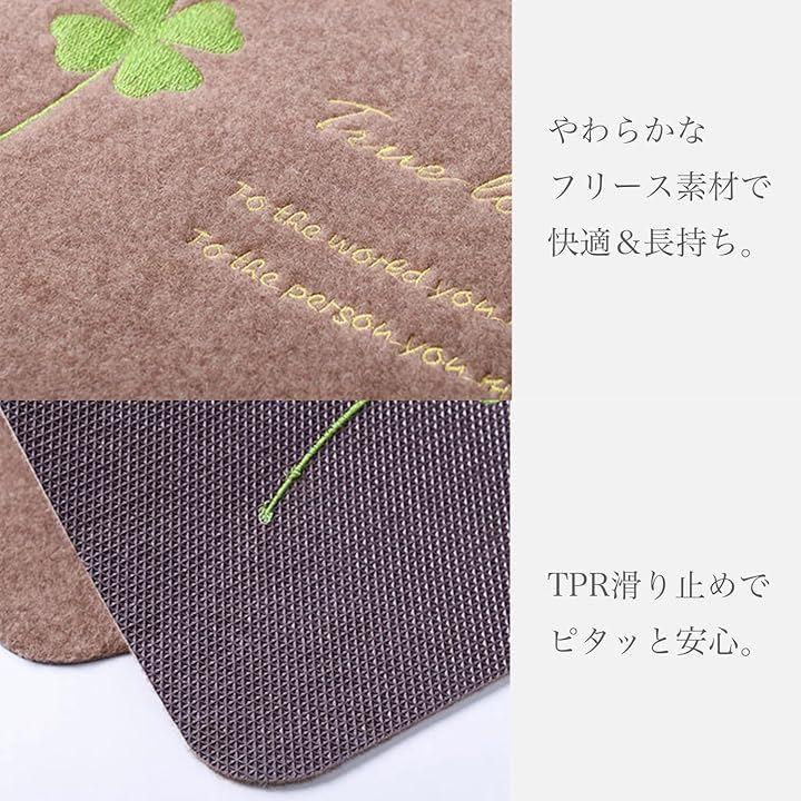 やわらかいフリース素材で素足にも心地よく、玄関やキッチン、ベッドサイドなど様々な場所で使えます。