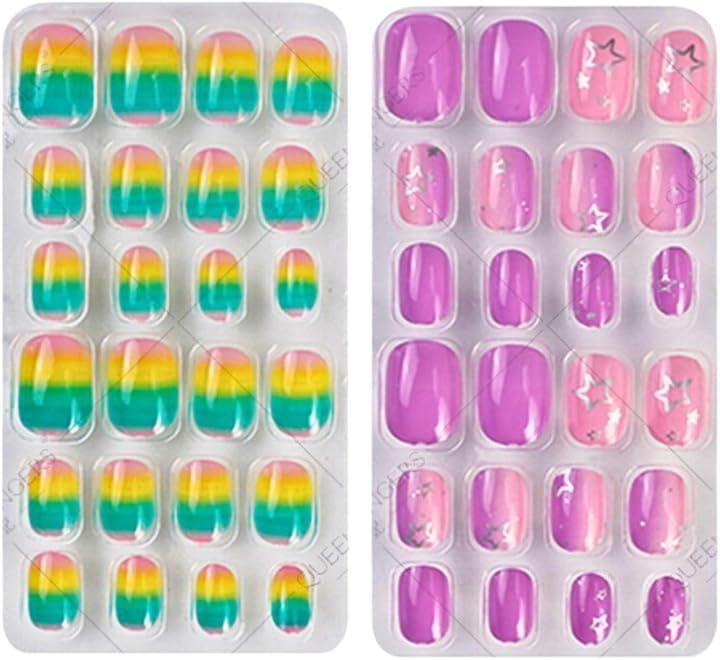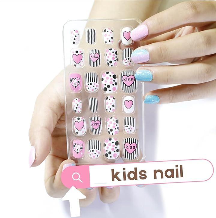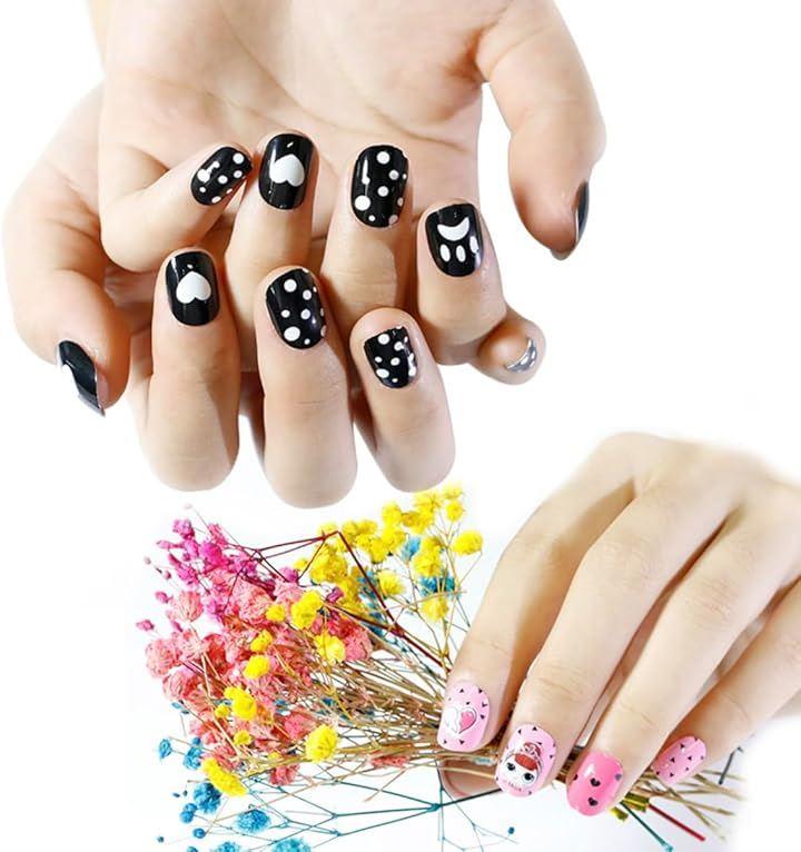 このネイルチップセットには、子供用のショートタイプで、シンプルなデザインから夏にぴったりの透けない地雷系デザインまで揃っています。