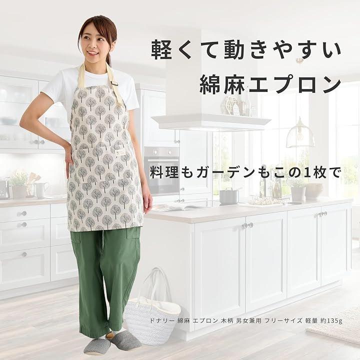 「リネンとコットンの絶妙なハイブリッド」このエプロンは、リネン特有の自然な風合いとコットンの柔らかさを兼ね備えた、北欧風デザインの可愛いエプロンです。