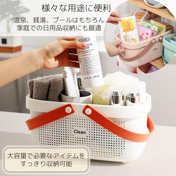 「お風呂や銭湯で大活躍」シャンプーや化粧品などの洗面用具をまとめて収納できる多用途バスケットです。