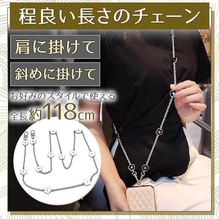 「おしゃれスマホショルダー チェーン 花柄 ギフトにも」大人かわいい花柄xシルバーチェーンで差をつける。斜めがけ・首掛け・肩掛けできる3WAY仕様で、ライブやフェス、カフェ巡りにも大活躍。