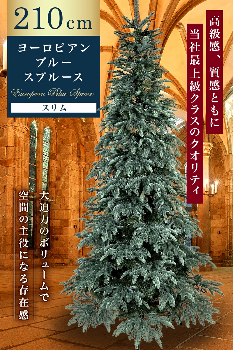 クリスマスツリー北欧210cmヨーロピアンブルースプルースツリースリムクリスマスツリークリスマス木