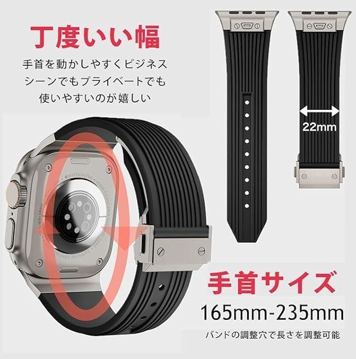 アップルウォッチUltraのチタンケースに調和し、デザイン性も機能性も抜群のバンドです。