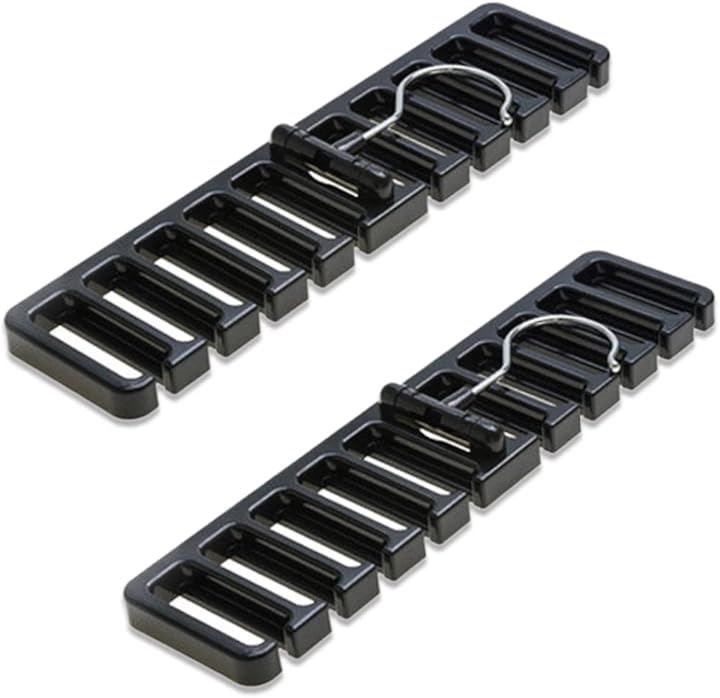 「商品内容」ベルトハンガー:2個 スペース:10x2 カラー:ブラック 素材:プラスチック <サイズ> 横:30.5cm 縦:7.3cm 高さ:1.4cm