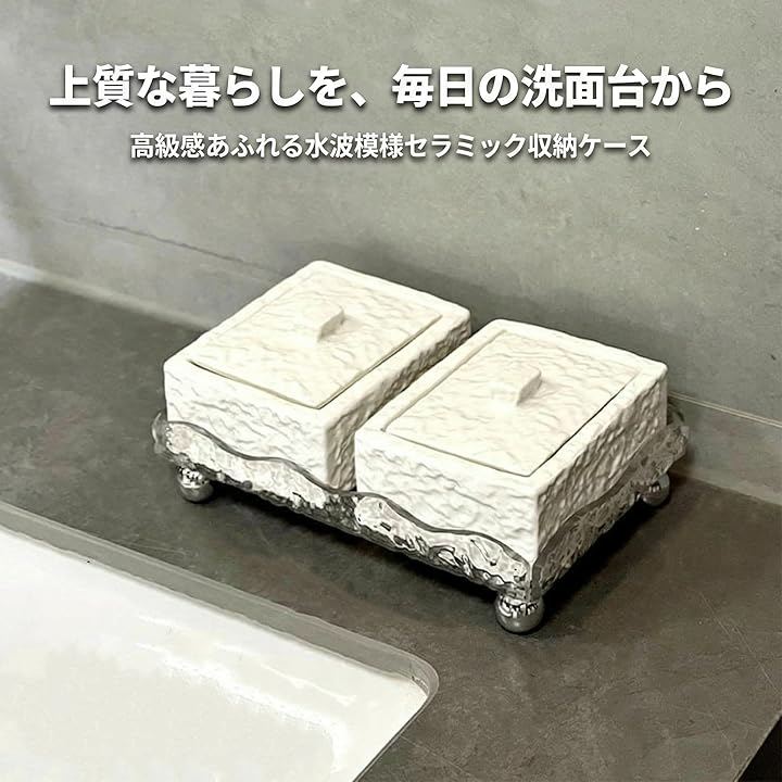 「ホテルライクな上質空間」美しい水波模様が特徴のセラミック製綿棒ケース。