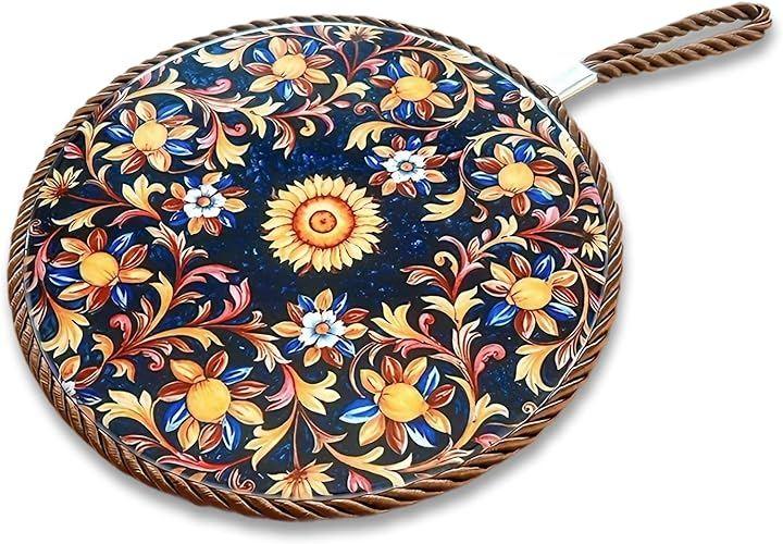 「商品サイズ・お手入れ方法」 直径約17cm、紐の長さ約6cm、厚み約0.8cm、重さ約250g 汚れた場合は固く絞った布で拭き取ってください。
