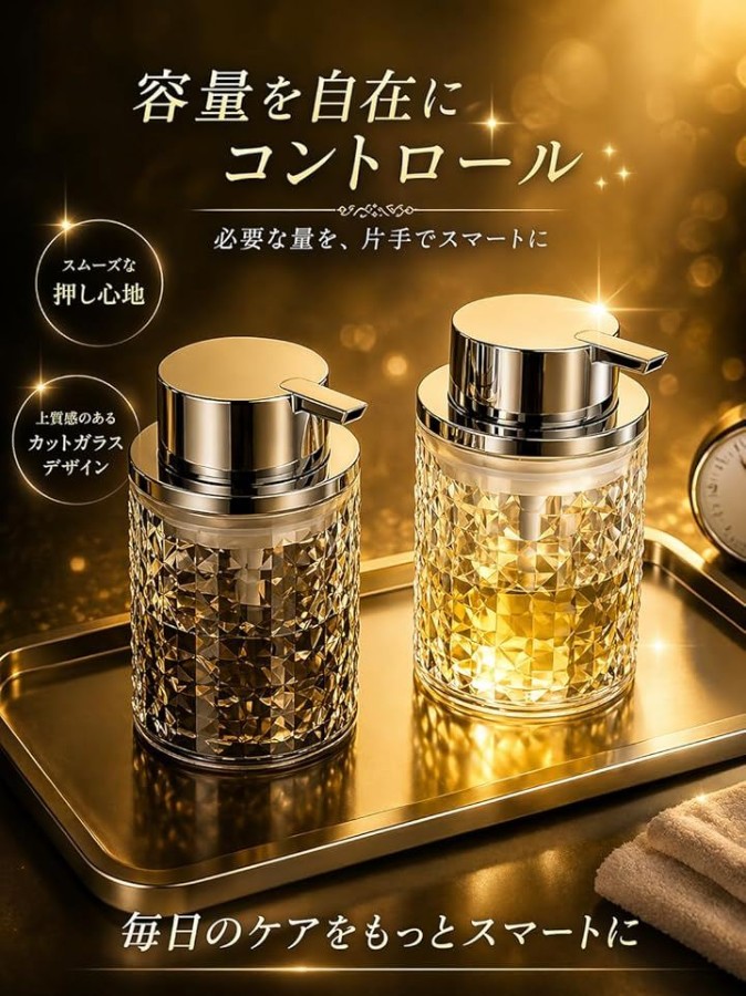 「 用量を自在にコントロール 」 手動プッシュ式なので、ボタンを押すだけでふわふわの泡が出てきます。