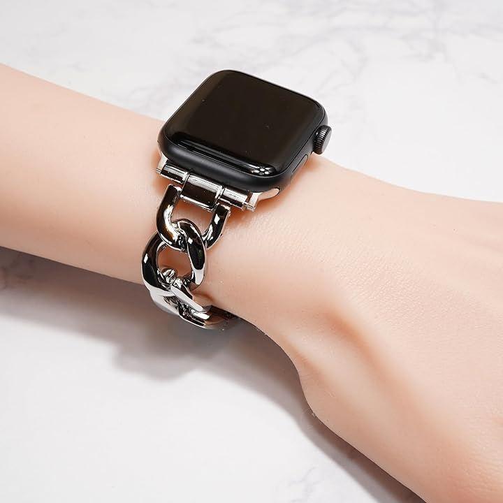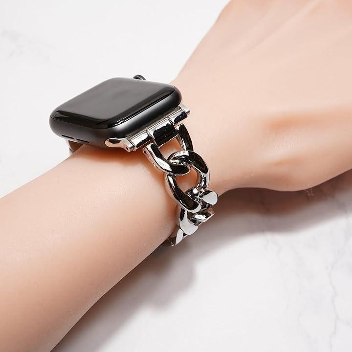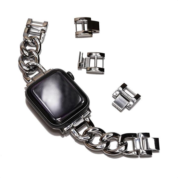 Stylish Compatible/Replacement Chain Band for Apple Watch, Metal/Silver, No Tools Required, Perfect Gift for Men and Women, Fits Apple Watch 44mm, 45mm, 46mm, and 49mm