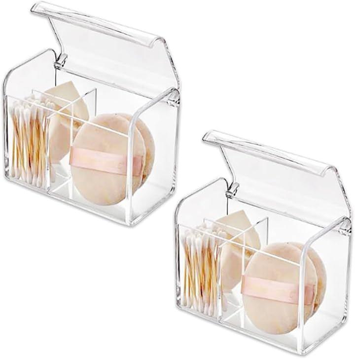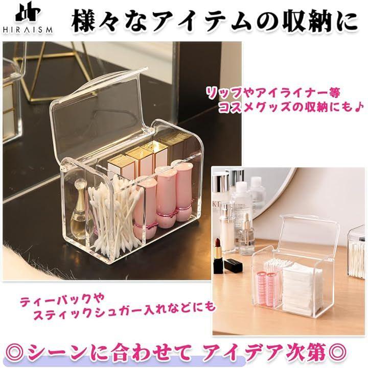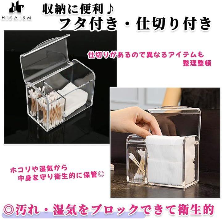 「収納便利。フタ付き/仕切り付き」透明アクリル製の綿棒/コットンケースです。
