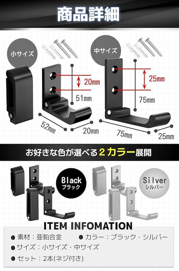 「商品詳細」素材:亜鉛合金カラー:ブラック・シルバー/サイズ:小サイズ・中サイズ/セット:2本(ネジ付き)/