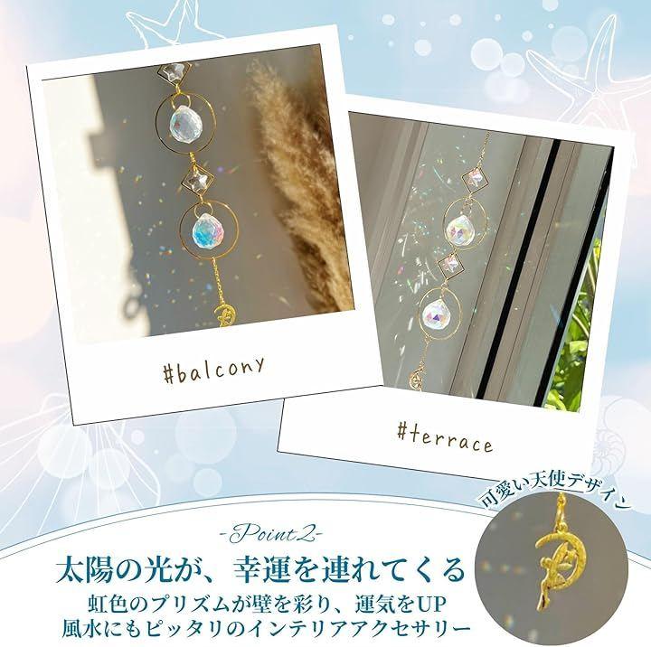 「エンジェルxサンキャッチャーx風鈴で癒し空間を演出するインテリア雑貨」 天使モチーフのウィンドチャイムとサンキャッチャーは、窓辺や玄関、リビングに彩りと癒しを与えるインテリアアイテム。