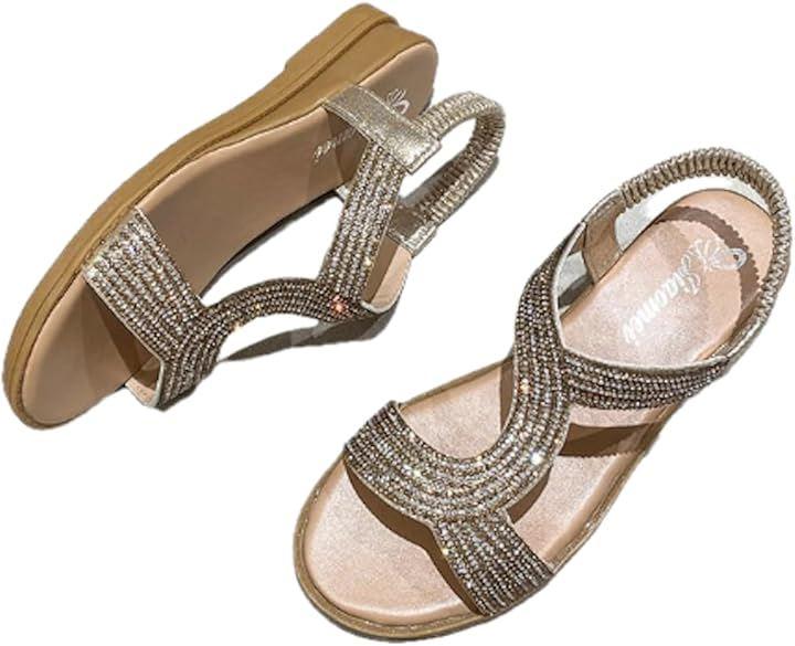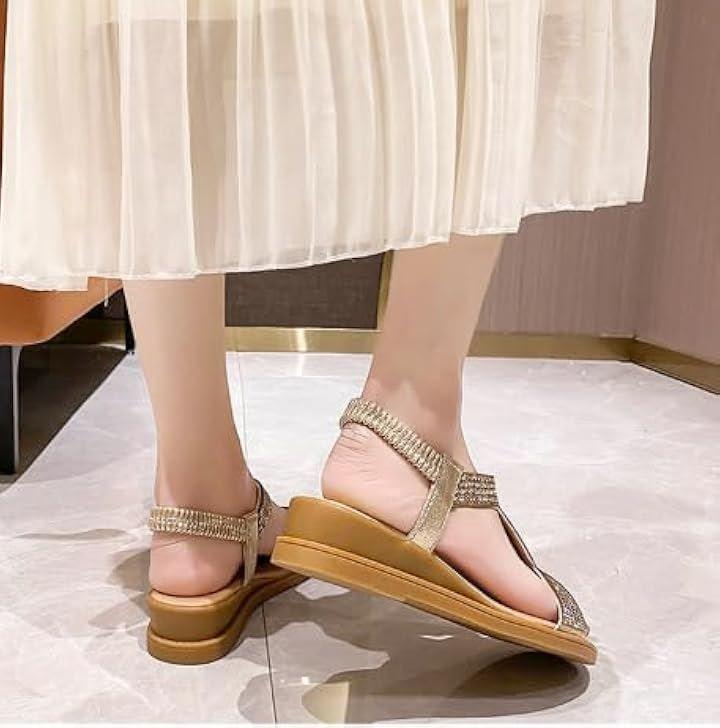 [ ローヒールで長時間歩いても疲れにくい快適さ ] ヒールが高すぎず、足への負担を抑えたローヒール設計のこのサンダルは、見た目の華やかさとは裏腹に、長時間の歩行でも快適さをキープしてくれる優秀な一足です。