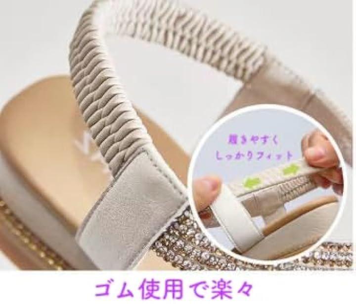 [ キラキラ輝くビジューで足元に華やかさをプラス] このサンダルの魅力の一つは、甲部分にあしらわれたS字型のビジュー装飾です。