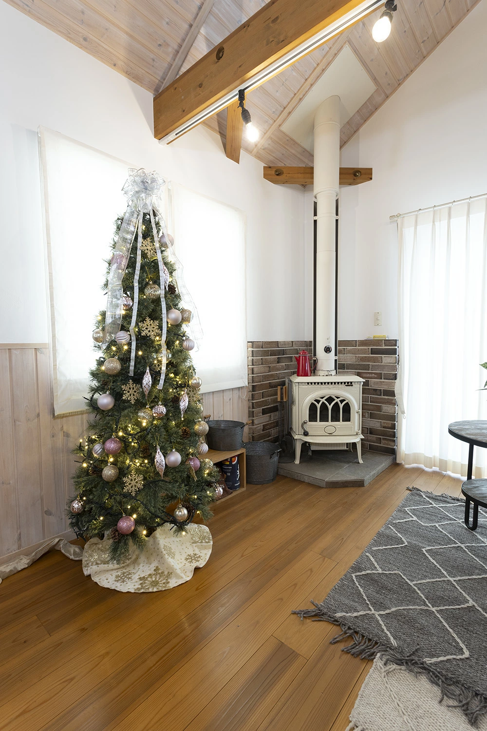 ●使用アイテムクリスマスオーナメントセット(シャイニングキュート・ホワイト)クイックワイヤーリボン(シルバーメッシュ)200球LEDライト・コントローラー付(電球色)70cmブライトスノーツリースカートケーブルカバーリボン(オフホワイト)