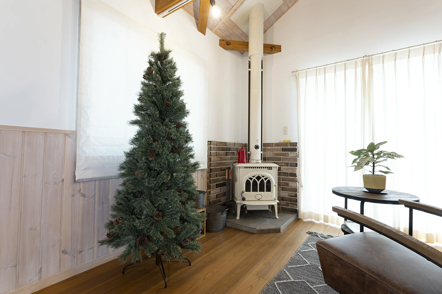 ▼180cmエーデルスレンダーの飾り付例●使用アイテムクリスマスオーナメントセット(ブランカノヴィア)200球LEDライト・コントローラー付(ホワイト)ホワイトファーツリースカート