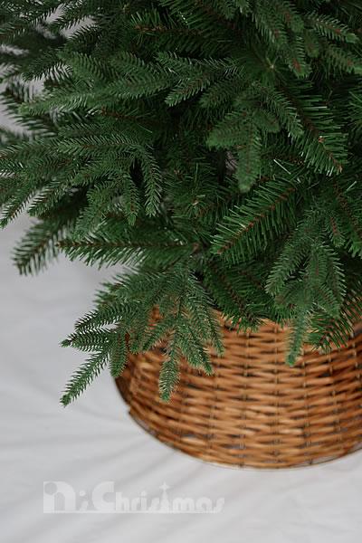 金属のツリースタンドを可愛らしく見せるため、天然素材を使用したバスケットで覆いました。