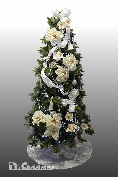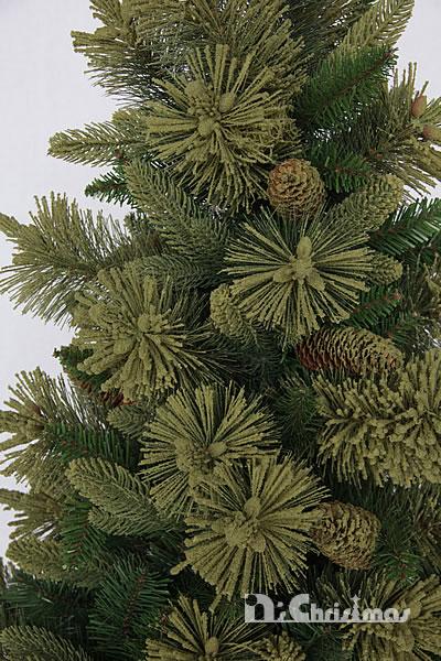 近頃はスリムツリーが大人気ですが、それだけではなくボリュームと贅沢さをお求めになる方が増えてまいりました。その真っ向から相対する問題に挑んだのがこのホーリー・スプルース・スリムツリーです。ボリューム感を出すために幅広く整えられたラウンドフィルム葉。シャープな雰囲気をかもし出すスピアカットの葉。このツリー最大の特長で圧倒的ボリューム感のニードル葉。ドイツトウヒを精巧に模したポリ成型葉。しかもニードル葉とポリ成型葉にはクリスマスカラーのひとつである緑に更に若さをイメージした加工を施すなど、4種類のこだわり抜いた枝を装着しています。