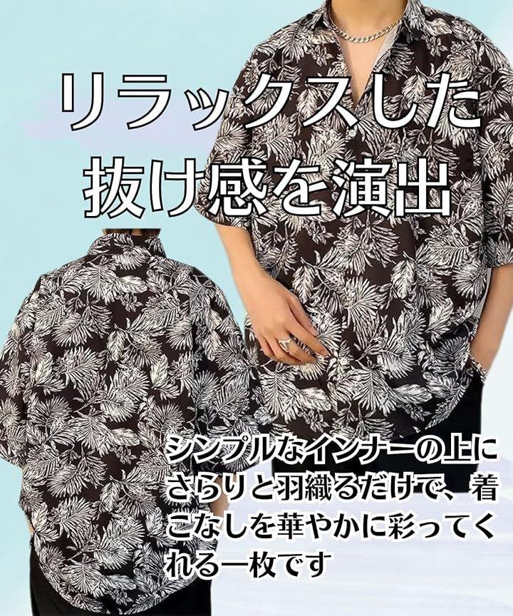 カラーバランスが絶妙なアロハ柄テイストの総柄デザインが夏のファッションを彩ってくれます デザインの違いで雰囲気も変わるので、何枚持っていても困らないアイテムです。