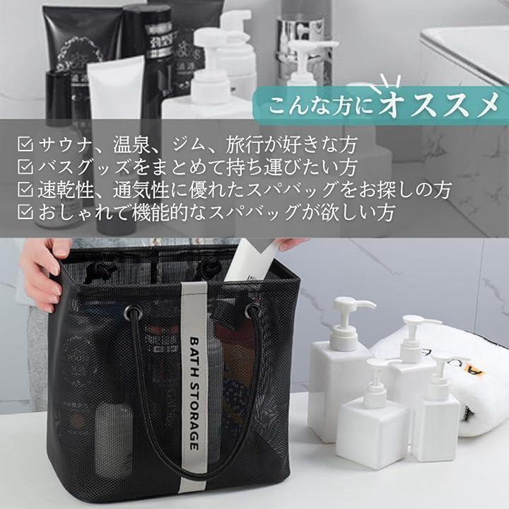 「スマートに持ち運べる大容量スパバッグ」タオル、着替え、シャンプー、リンス、サウナハット、サウナマット、アメニティグッズなど、必要なアイテムをまとめて収納できる大容量スパバッグ。