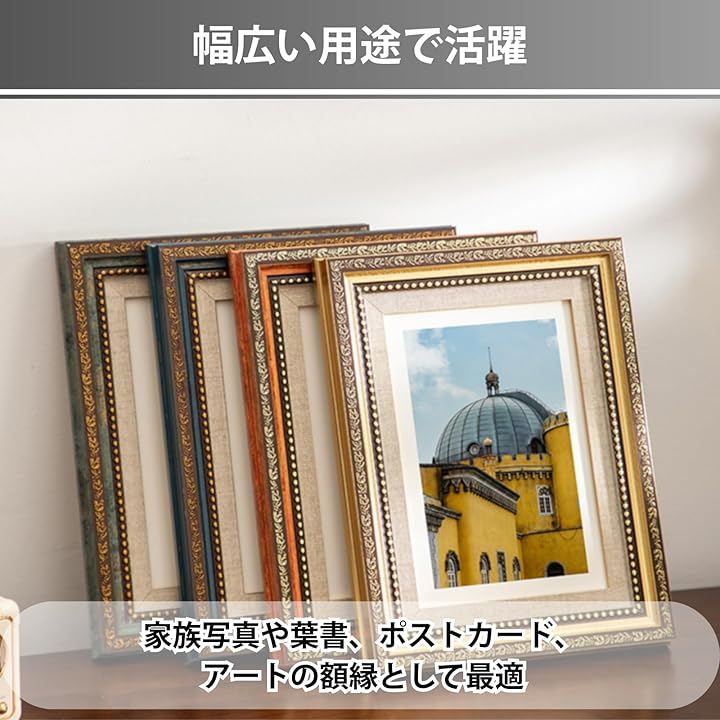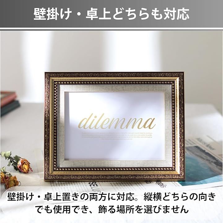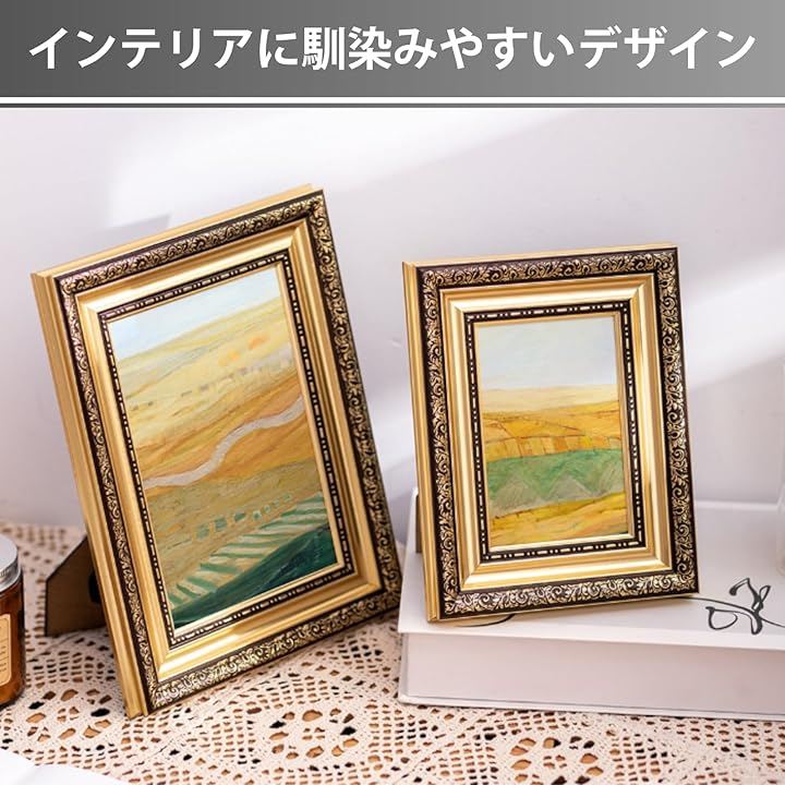 「アンティーク風デザインで上品に演出」 レトロ調や木目調のデザインが施された写真立て。