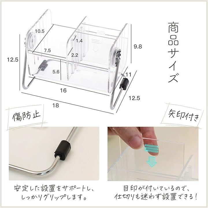 仕切りは取り外しができるため、収納するアイテムのサイズに合わせて柔軟に調整できます。