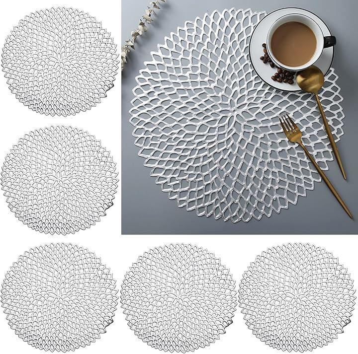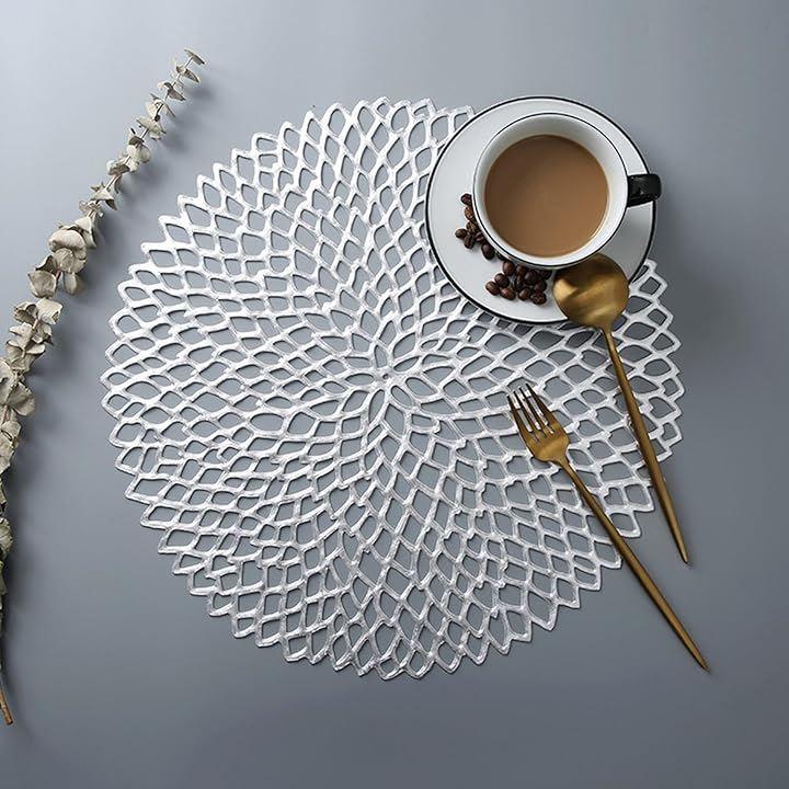 商品詳細:PVC製 ランチョンマット 5枚セット 「カラー」 3種 ゴールド/シルバー/ローズゴールド 「数量」 各色5枚セット 「材質」 PVC 「サイズ」 直径38cm 「重量」 約80g/枚 「特徴」 断熱・撥水・防滑・防汚・防油 「お手入れ」 手洗い