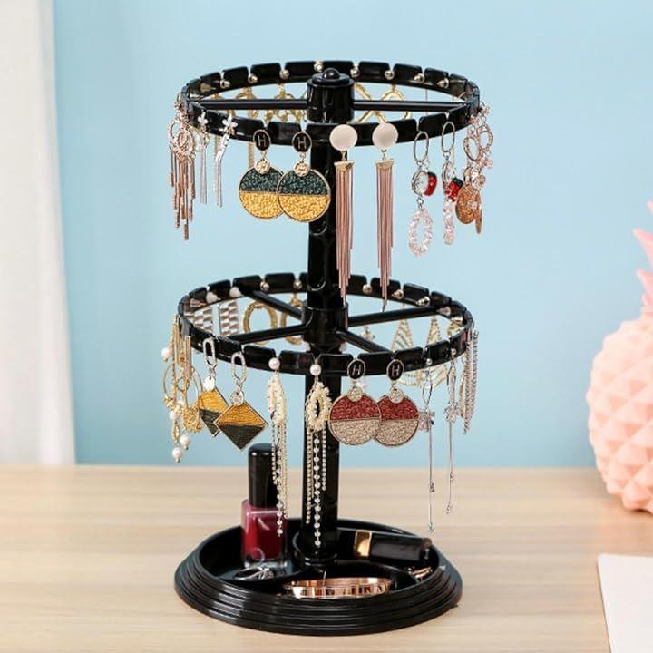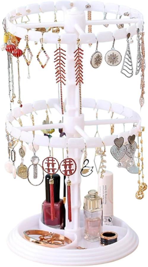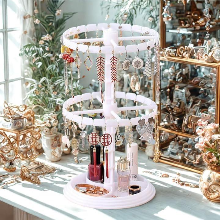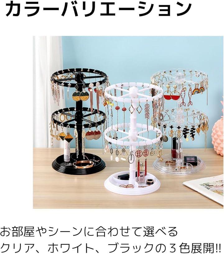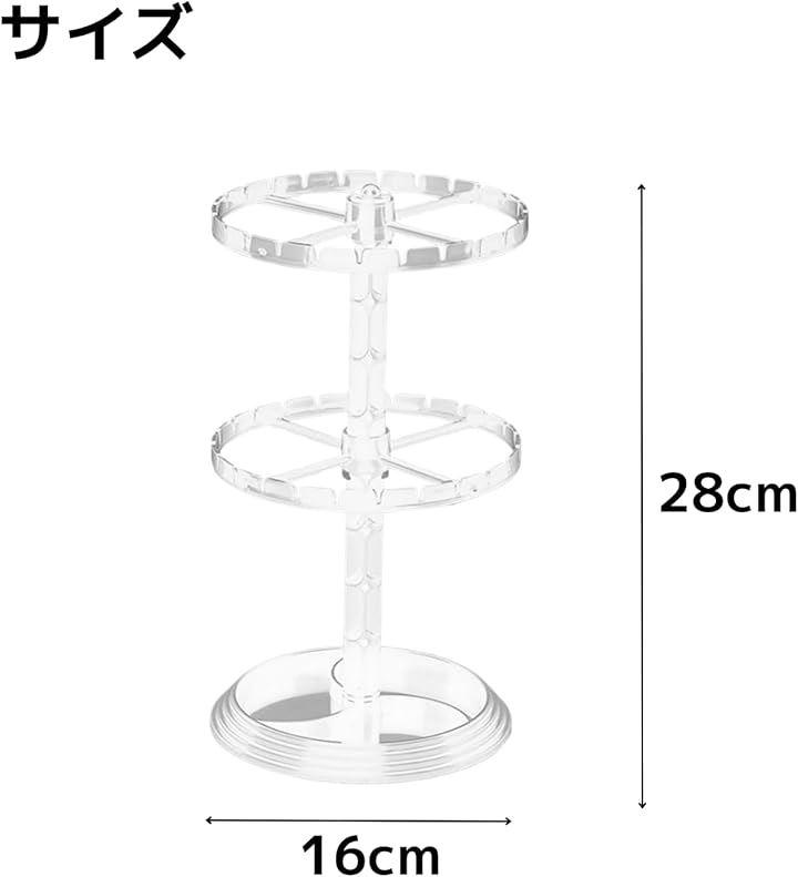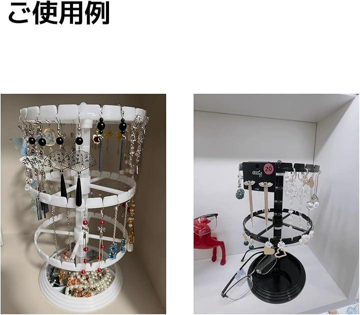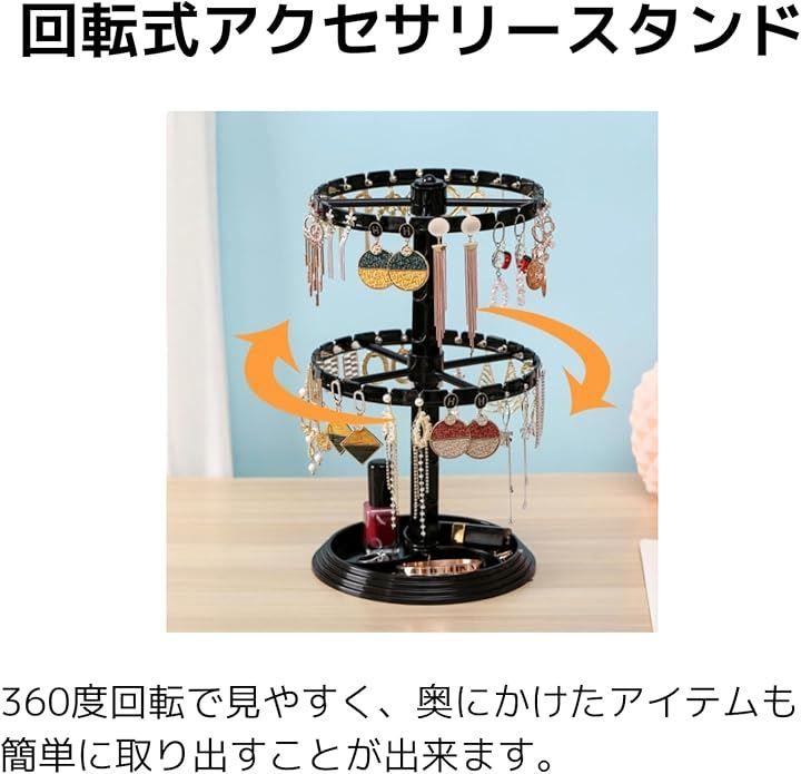 360 度自由に回転するこのスタンドは、奥側にかけたネックレスやキーホルダーなどを簡単に確認し取り出すことができます。