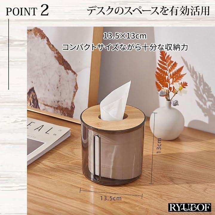 「北欧風デザインで空間を格上げ」シンプルで洗練された丸型デザインがリビングやオフィスに上品な印象をプラスし、どんなインテリアにも自然と調和する北欧風のおしゃれなティッシュケースです。