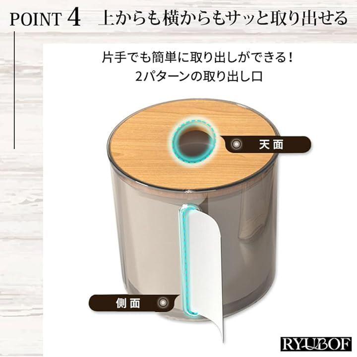 「北欧風デザインで空間を格上げ」シンプルで洗練された丸型デザインがリビングやオフィスに上品な印象をプラスし、どんなインテリアにも自然と調和する北欧風のおしゃれなティッシュケースです。