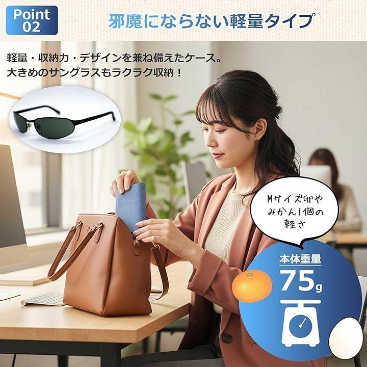 「邪魔にならない超軽量タイプ」毎日の持ち運びにぴったりな、わずか75gの超軽量メガネケース。