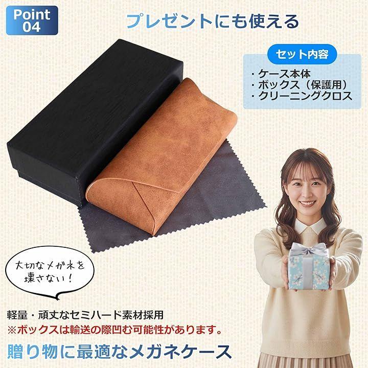 「プレゼントにも使える」本革のような高級感を持つフェイクレザーを使用したメガネケースは、誕生日や記念日、父の日・母の日の贈り物にぴったり。