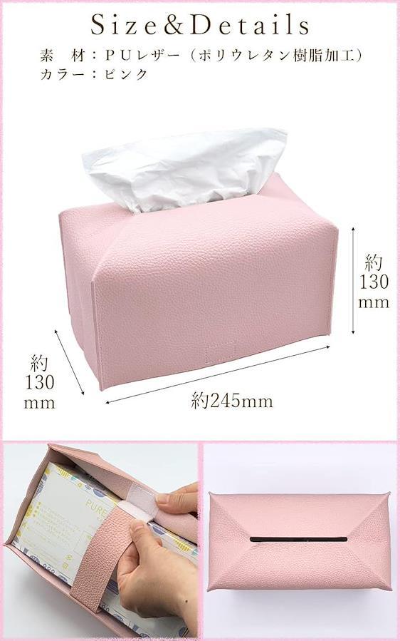 サイズ:約245mmx130mmx130mm(縦・横・高さ)の厚型で深型のティッシュカバーです。
