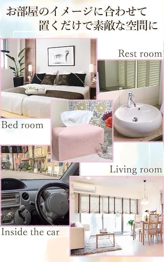 リビング、ベッドルーム、キッチン、洗面所、車の中などお部屋の雰囲気に合わせてお洒落にお使いください。