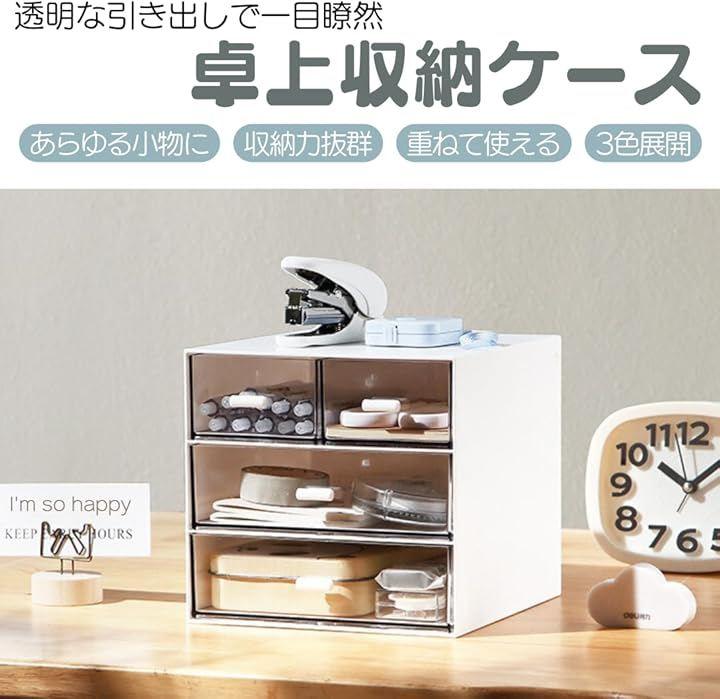 「透明で見やすく、スペース効率的」この収納ケースは、透明な引き出しにより一目で必要なものが見つかるため、デスク周りの整理が簡単に。
