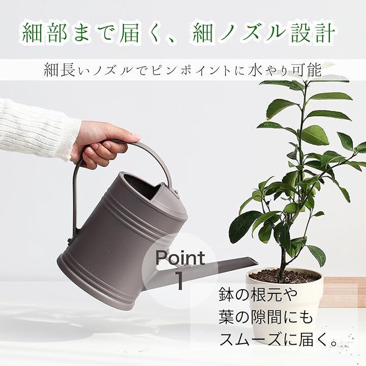 軽量で持ちやすい設計ながら、適量の水をスムーズに注げるノズルで、室内外の植物の水やりに最適。