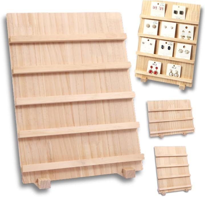 Stylish wooden accessory display rack for earrings, pierced earrings, and rings.