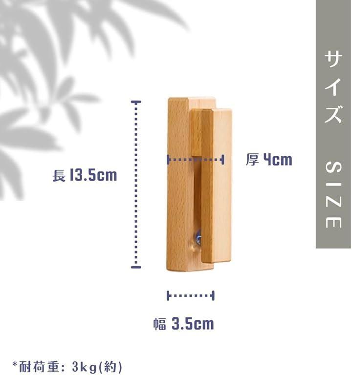 「商品内容」本体サイズ(約):長さ13.5cm、幅3.5cm、厚み4cm 材質:木材 耐荷重:約3kg *サイズ詳細は商品画像をご確認ください。