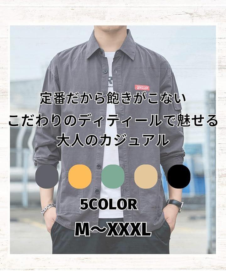 「カラー」イエロー グリーン ブラック グレー ベージュ 「サイズ」M~2XL M 肩幅55.5/袖丈53/身幅104/着丈66、L 肩幅56/袖丈54/身幅106/着丈69、XL 肩幅56.5/袖丈55/身幅108/着丈72、2XL 肩幅57/袖丈56/身幅112/着丈73