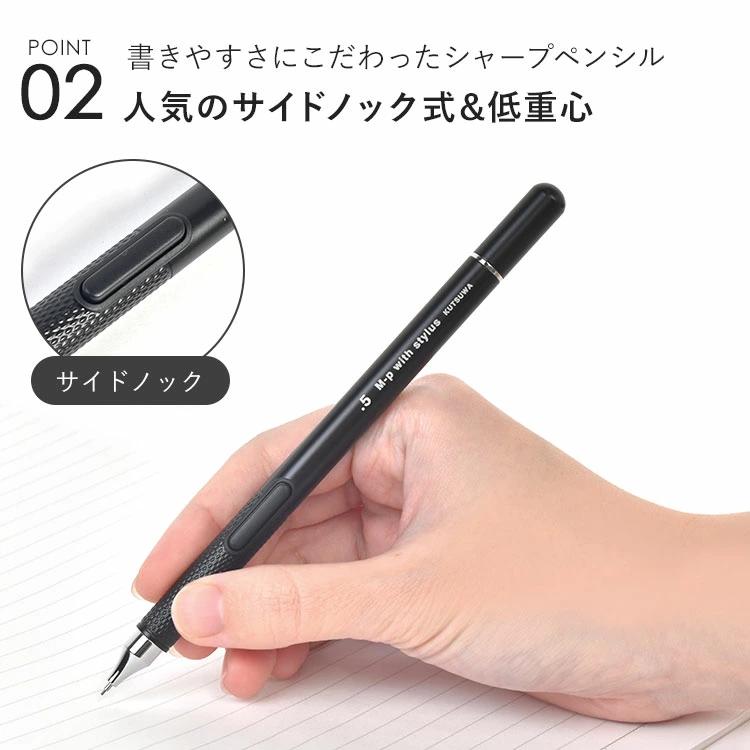 【サイドノック式シャープペンシル+タッチペン】仕事中のメモやタブレット学習に◎スムーズな操作感のサイドノック式シャープペンシルと充電・ペアリング不要のタッチペンがひとつになった2WAYペン。シャープペンシルは低重心仕様かつグリップの滑り止め加工で安定した書き心地を実現。タッチペン部分はペン先が見えやすくどのような角度でも書きやすいディスクタイプです。キャップもスマートなマグネット式でスタイリッシュな仕上げです。