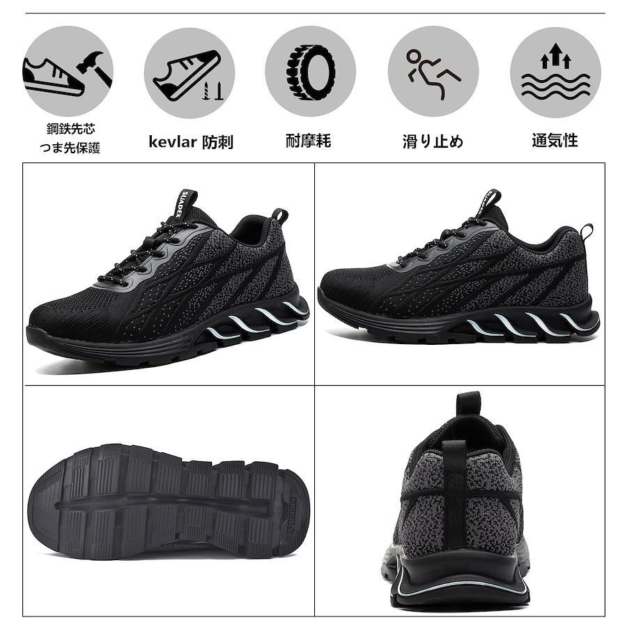 クロージャータイプ レースアップ 【安全性能】つま先部分に鋼製の先芯を入れた、金槌や刃物などからつま先を保護できます。また、(kevlar)ケブラーミッドソールを搭載し、足底の安全を確保。【耐摩耗ヒール】底減りしやすいかかと部に耐摩耗性に優れた配合を施した合成ゴムを採用しました。【滑り止めソール】耐油性能を持たせたソールを採用して、ガソリン系の油などの環境下でも劣化しない、それに滑り止めでき、耐摩耗も優れます。【通気性】アーパー部分に通気性優れた素材を採用しただけでなく、ライニングも通気性よい素材で作った、作業中でも足がそんなに蒸れないです。【適用範囲】スポーツスニーカーのようなデザインを実現した、快適化素材を採用し、長時間履いても疲れにくく、キッチン、ガソリンスタンド、製造工場、現場工事、アウトドア、旋盤作業など様々な場合に適した快適モデルです。