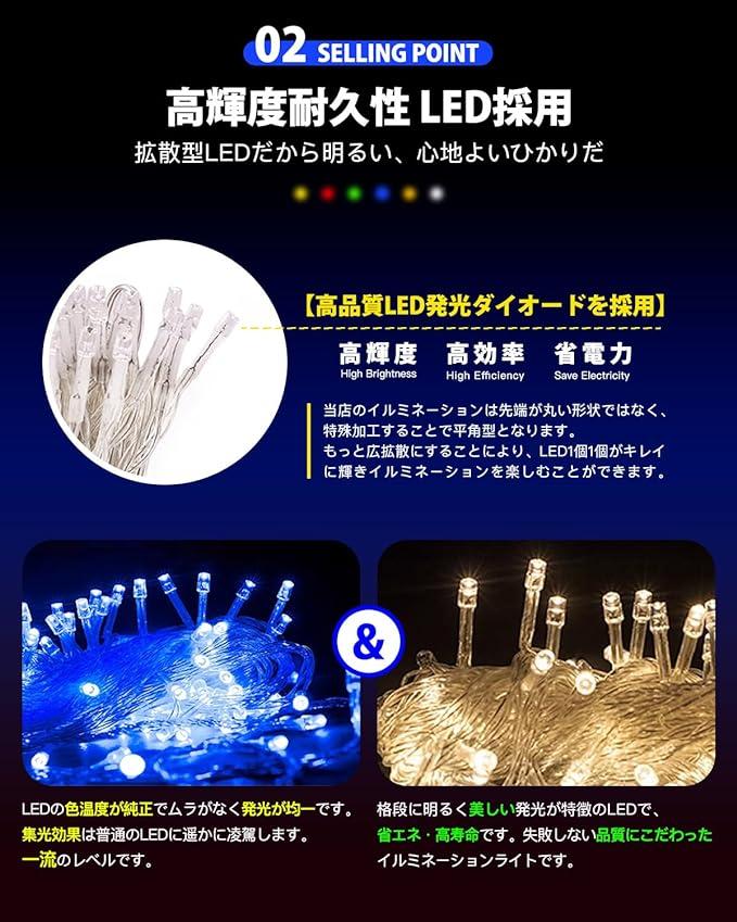 【安心】日本現地法人なので、何かあればスムーズに対応可能!不良品が有っても往復送料が当社負担で交換対応いたします。■高水準の生産メーカーより、コンテナ単位の大量仕入れでコストカット!ワンシーズンだけでなく、長くご利用頂ける商品となります。 クリスマスやハロウィンなど、イベントを彩るLEDタイプのイルミネーションです♪屋外でのイルミネーションなどの電飾設備などに役立ちます。華やかで温かみのあるパステルカラーを再現します。格段に明るく美しい発光が特徴のLEDで、高輝度・省電力・長寿命です。 ミニと芸術的な外観は、それは持ち運びが容易です。 多色光と、それは夜に非常に美しく見えます。 消費電力は従来のミニライト等と比べると、約1/5?1/10で小さく電球の寿命も長いので、とっても経済的です。 また低電圧のため消費電力が低くランニングコストを抑えたご利用が可能です。※ライト部分は防雨ですが、コントローラーは完全防水ではありませんので、屋外でご使用の場合、キャップをしっかりお閉め頂いてからコントローラー部の防水対策をしてください。※お客様のモニタ画面から見える色と実際の色とは多少異なる事がございます。?もっと見る