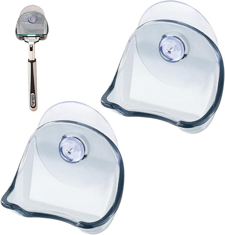 浴室や洗面所に簡単取り付け。吸盤式カミソリ収納ホルダー2個セットです。