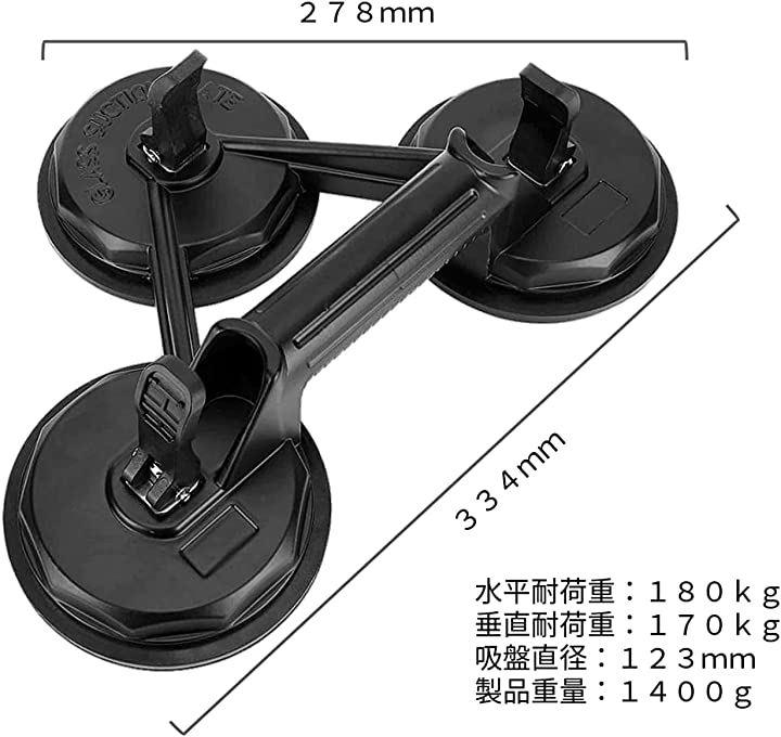 ・超強力吸着。最大耐荷重180kg トリプルヘッドのバキュームリフター 吸着盤です。