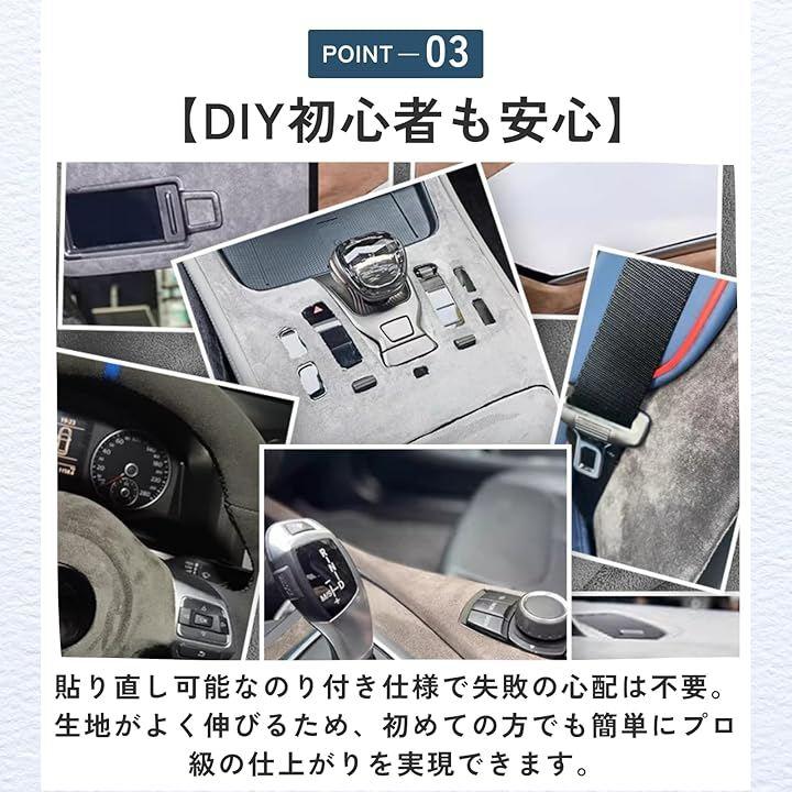 「高級感を手軽に演出」「車内をもっと上質な空間にしたい」「内装の小傷や劣化が気になる」そんな悩みを、貼るだけで解決するスエードシートです。