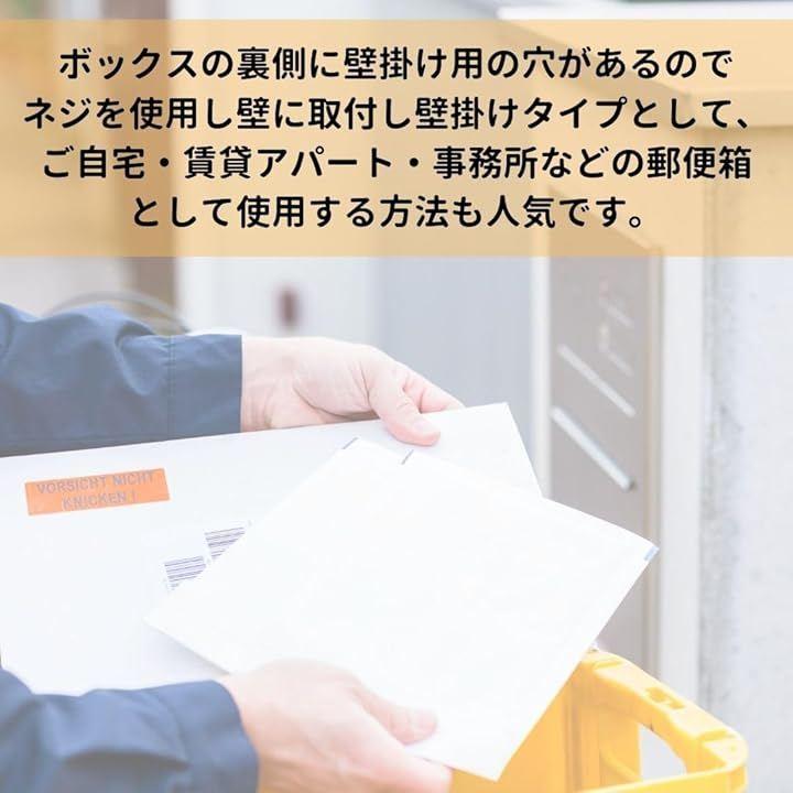 置き型で使う方が多いですが、ボックスの裏側に壁掛け用の穴があるので、ネジを使用し壁に取付し壁掛けタイプとして、ご自宅・賃貸アパート・事務所などの郵便箱として使用する方法も人気です。