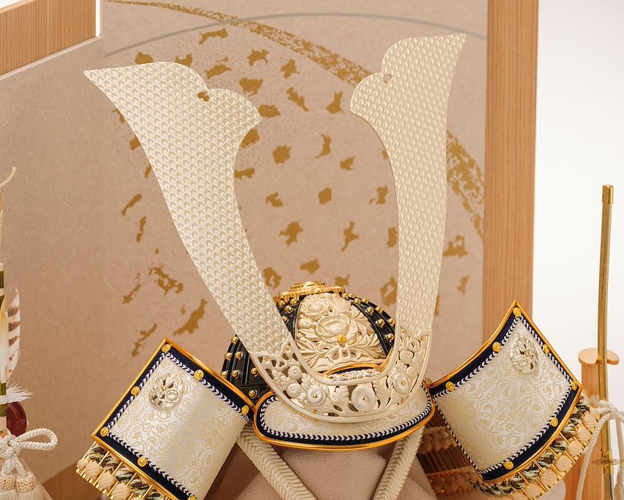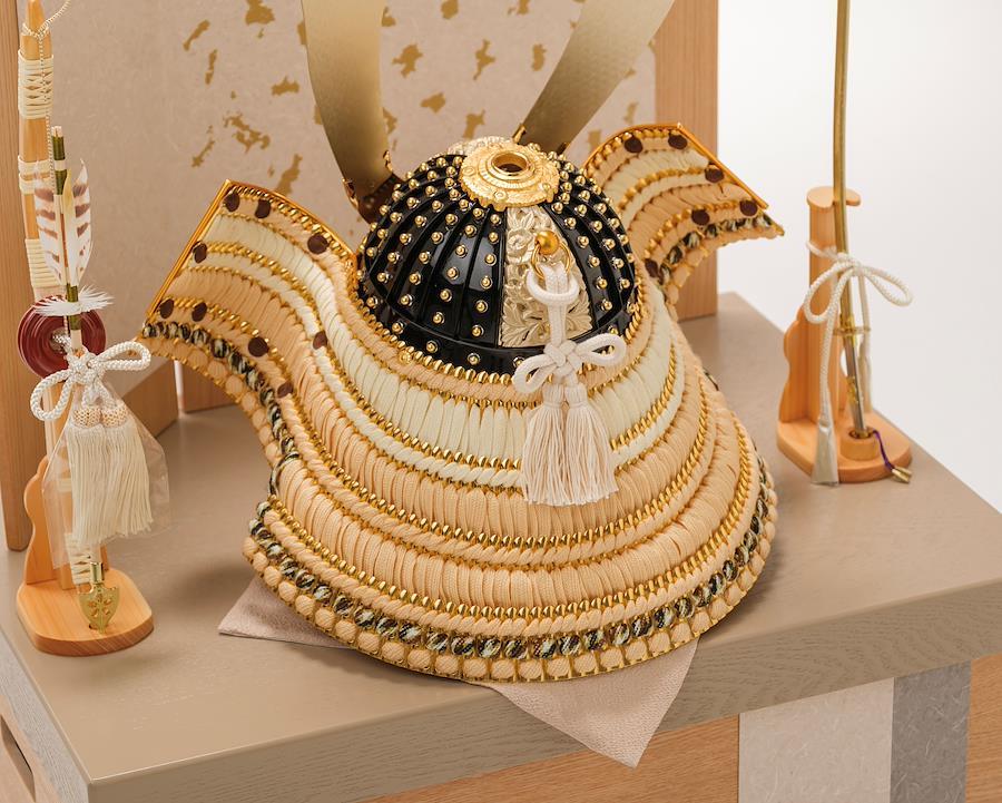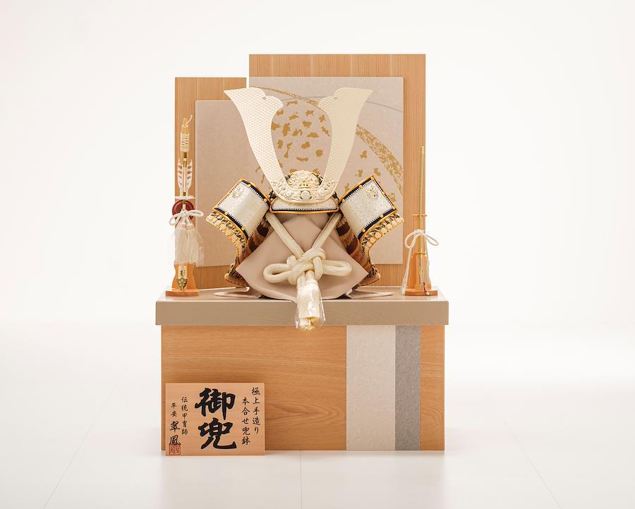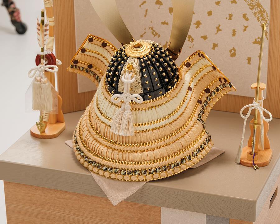 こちらの商品は2025年に石破総理がアメリカ合衆国「トランプ大統領」に贈った兜です。日本では「金の兜」として知られ、子供が実際に被る事の出来る着用兜です。手作業で作製するため、日本国内でも品薄状態の逸品です。吹き返しには京都有名織物【龍村美術織物】の正倉院葡萄唐草紋錦を使用し金具は唐草文様。兜の鉢は「矧ぎ合わせ鉢」で、縅は金小札・ベージュ中白色の配色で上品な雰囲気に仕上がっております。屏風には47都道府県のシルエットが入っており、日本の「つながり」をテーマにしております。■矧ぎ合わせ兜…兜の鉢には、格安な型抜き鉢と、本格的な合わせ鉢の2種類あります。矧ぎ合わせ鉢は、三角錐状の複数の鉄を、金星でつなぎ合わせて鉢の半円を製作します。強度を高める機能性に加え、筋や星などに装飾や造形としての美しさがあります。
